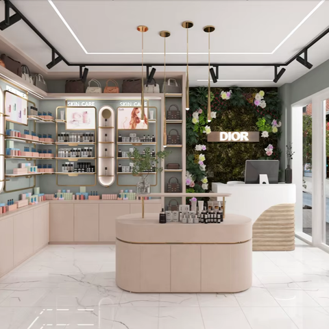 Customized Luxury Beauty Salon Interior Design Skincare Store Wall Shelf Spa Salon Display Furniture